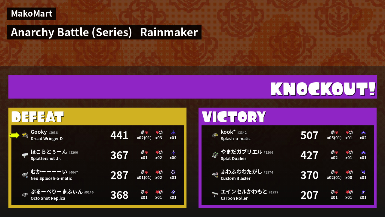 | Medals | #1 Overall Splatter #1 Turf Inker #1 Enemy Splatter | ||