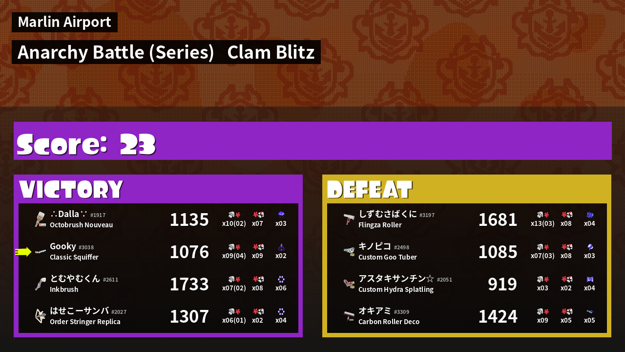 | Medals | #1 Score Booster #1 Clam Carrier #1 Splat Assister | ||