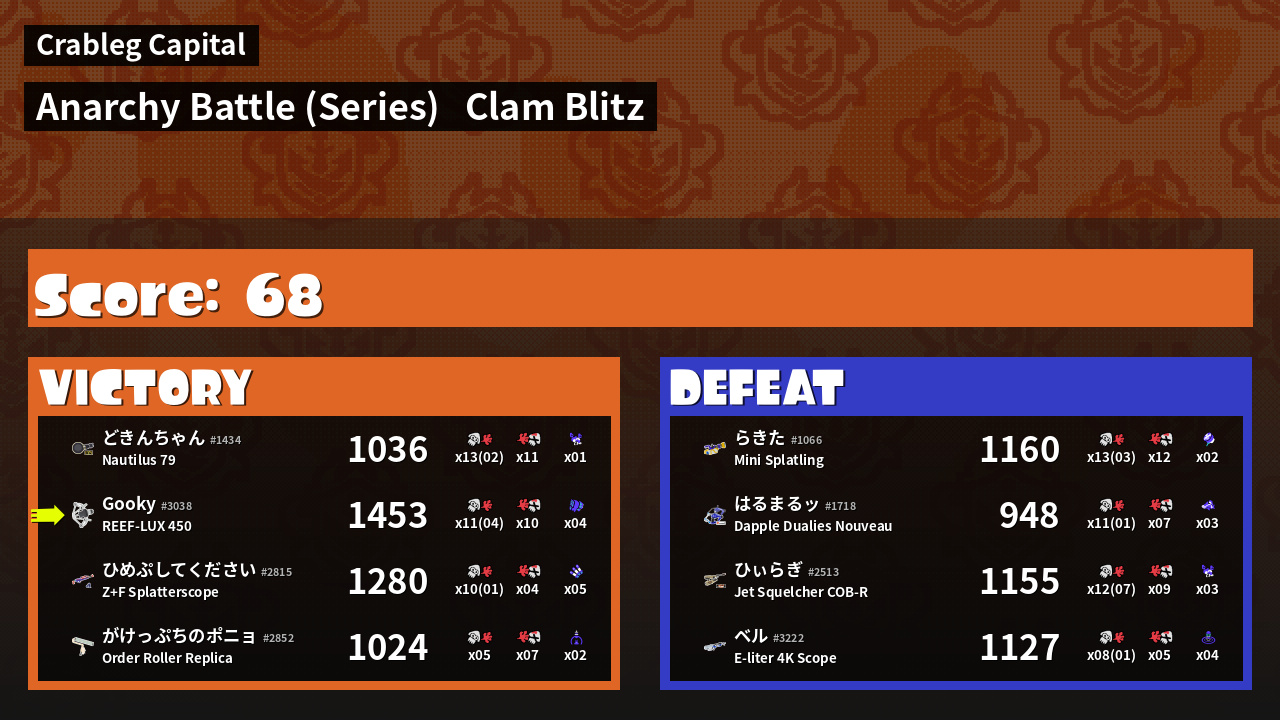| Mode | Clam Blitz - Anarchy Battle (Series) | ||