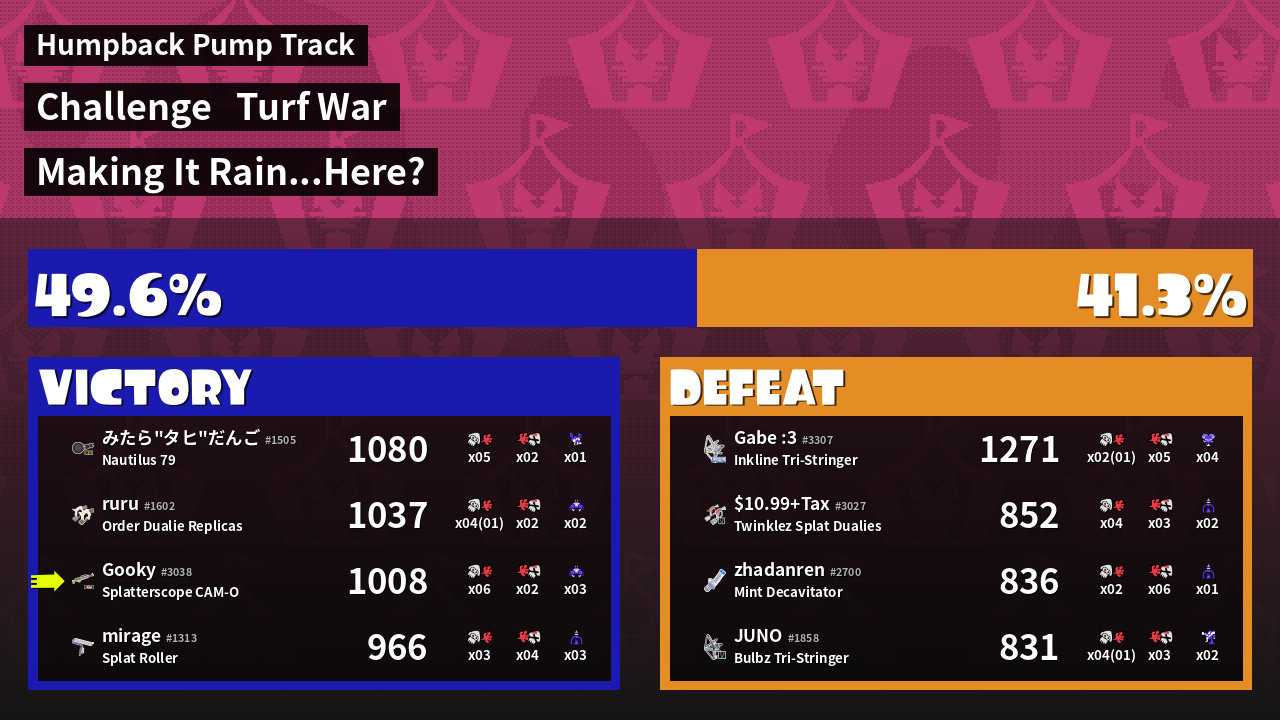 | Mode | Turf War - Challenge | ||
