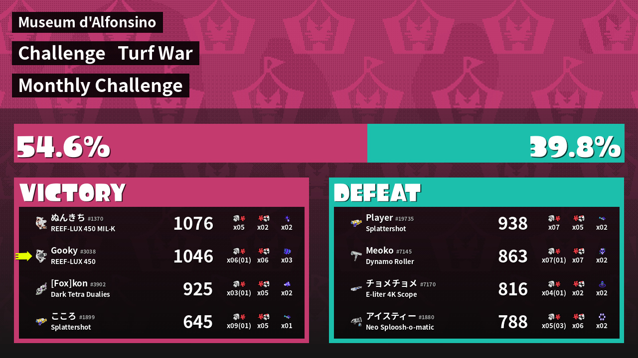 | Medals | #1 Enemy-Base Inker #1 Splat Assister #2 Overall Splatter | ||