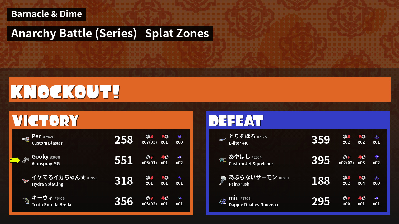 | Mode | Splat Zones - Anarchy Battle (Series) | ||