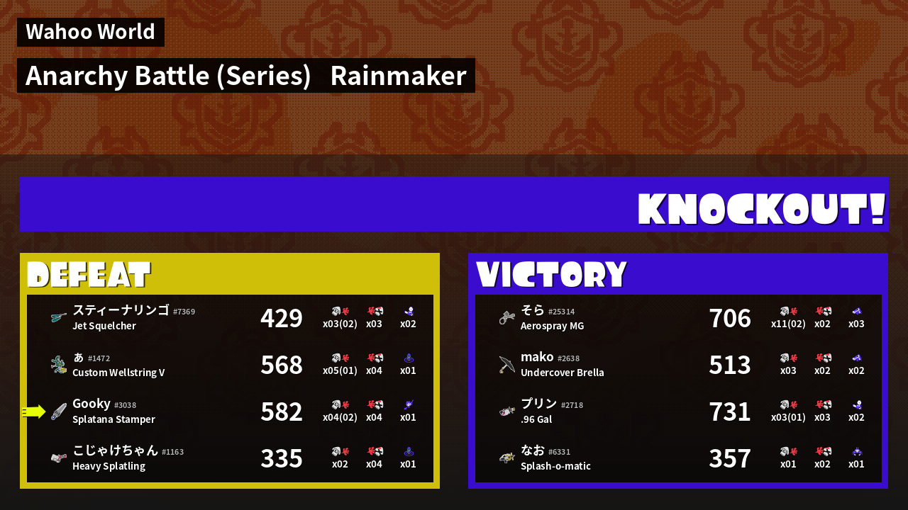 | Medals | #1 Turf Inker #1 Splat Assister #1 Ground Traveler | ||