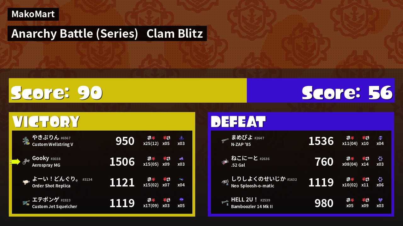 | Mode | Clam Blitz - Anarchy Battle (Series) | ||