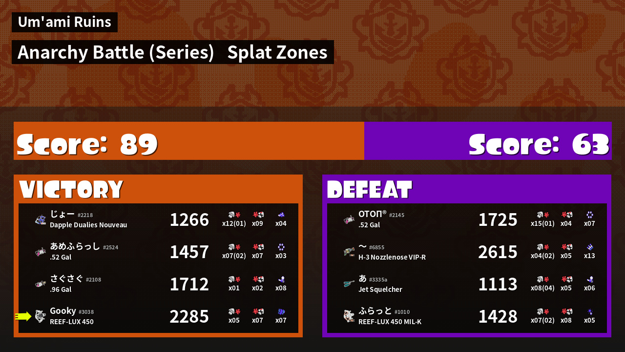 | Mode | Splat Zones - Anarchy Battle (Series) | ||