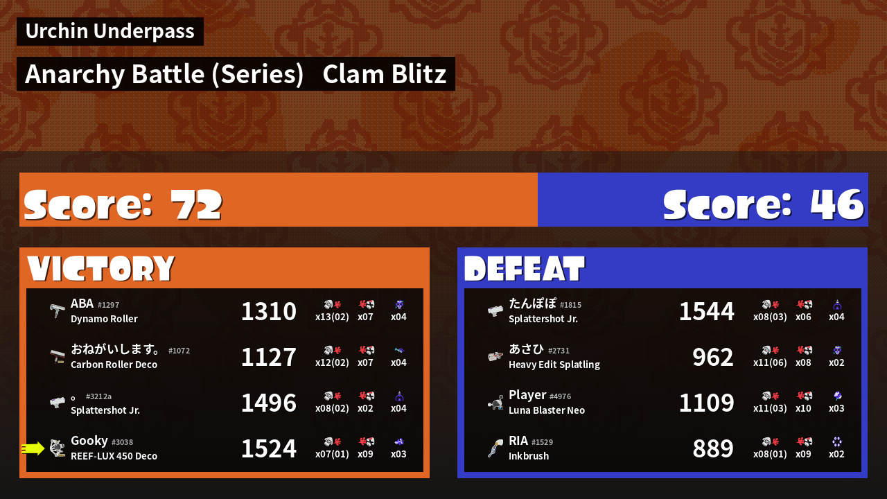 | Mode | Clam Blitz - Anarchy Battle (Series) | ||