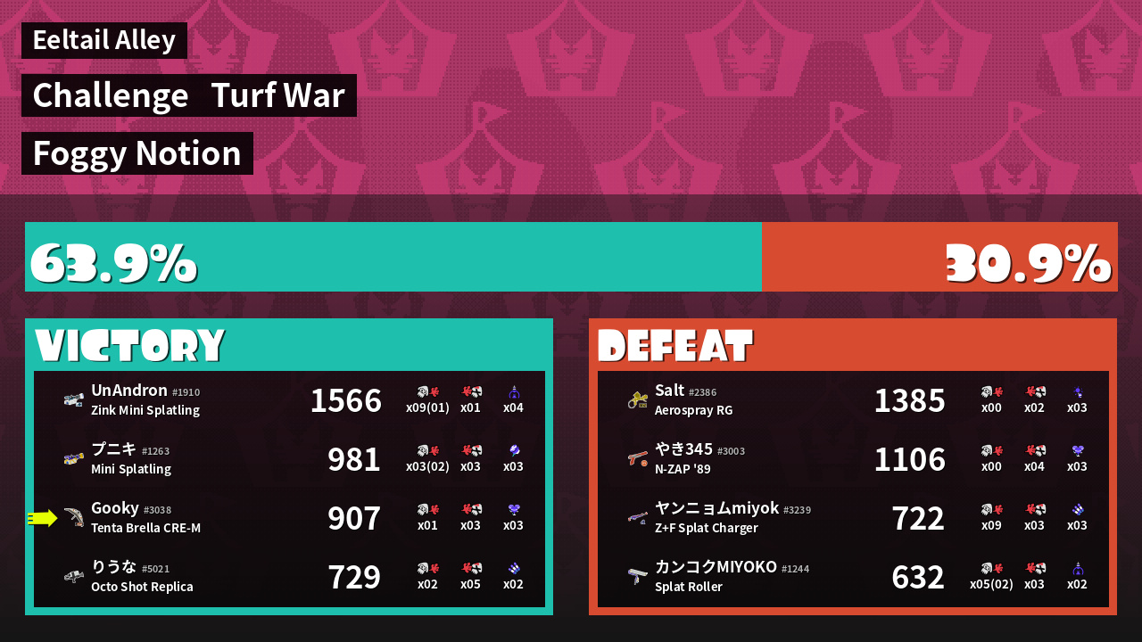 | Weapon | Tenta Brella CRE-M ( Toxic Mist / Super Chump) | ||