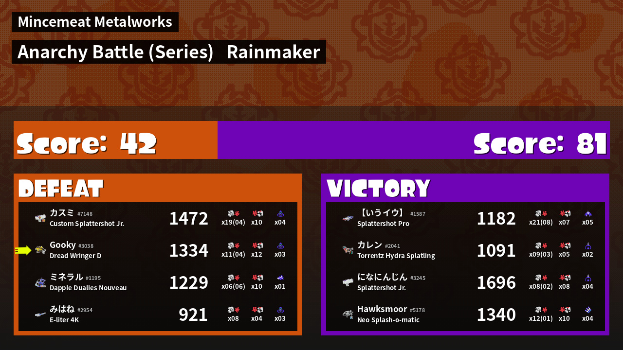 | Mode | Rainmaker - Anarchy Battle (Series) | ||