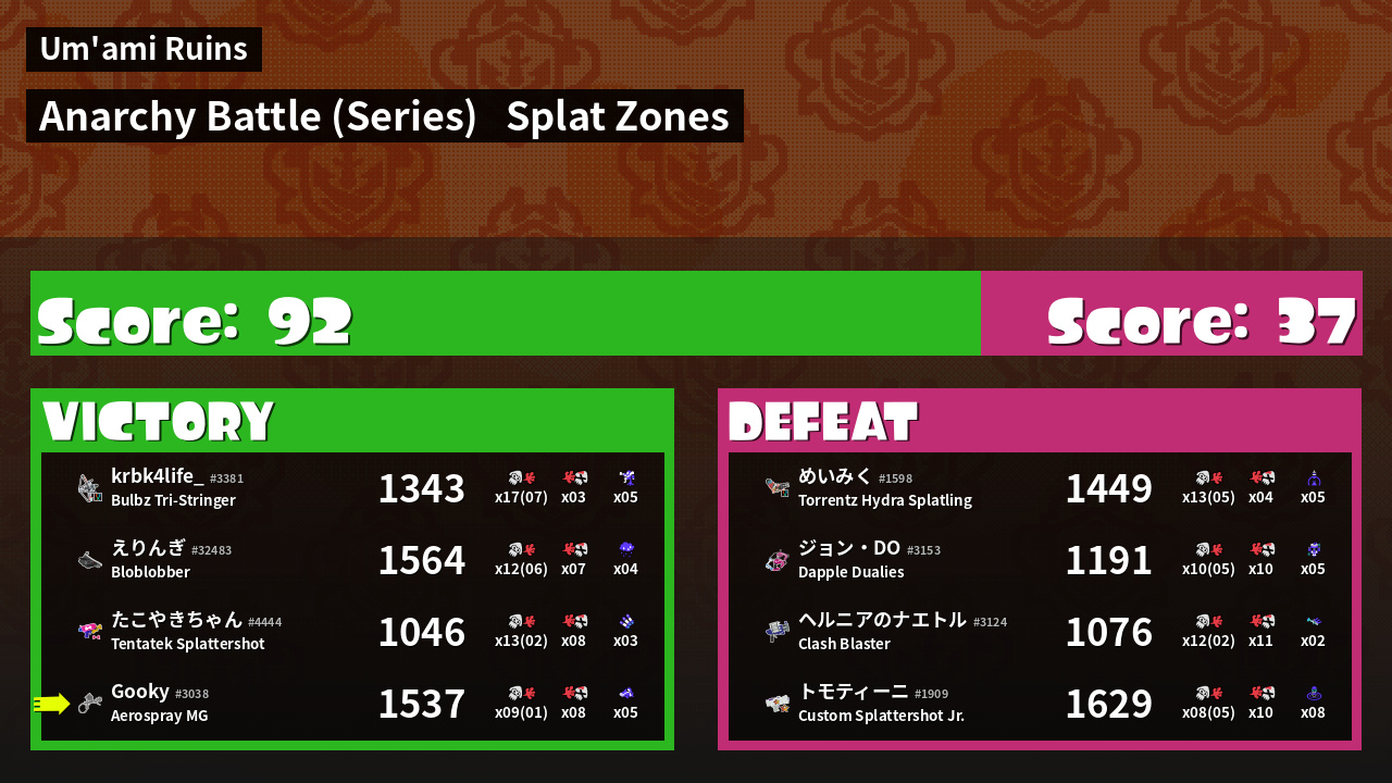 | Mode | Splat Zones - Anarchy Battle (Series) | ||
