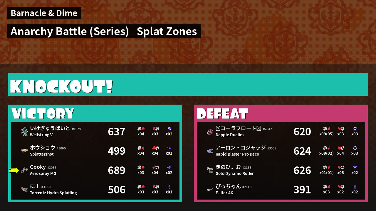 | Mode | Splat Zones - Anarchy Battle (Series) | ||