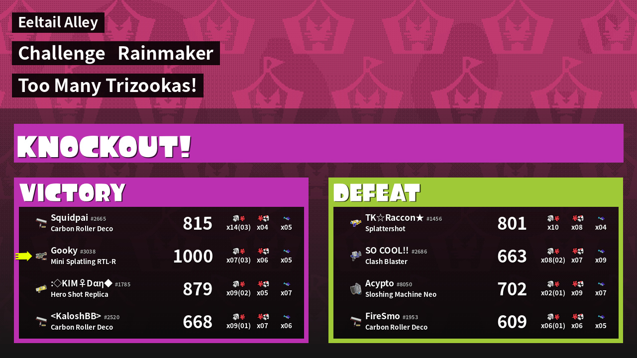 | Challenge | Too Many Trizookas! A high-powered Trizooka battle! | ||