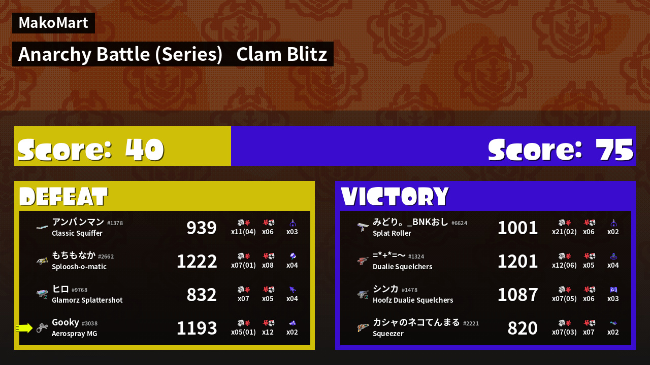 | Mode | Clam Blitz - Anarchy Battle (Series) | ||