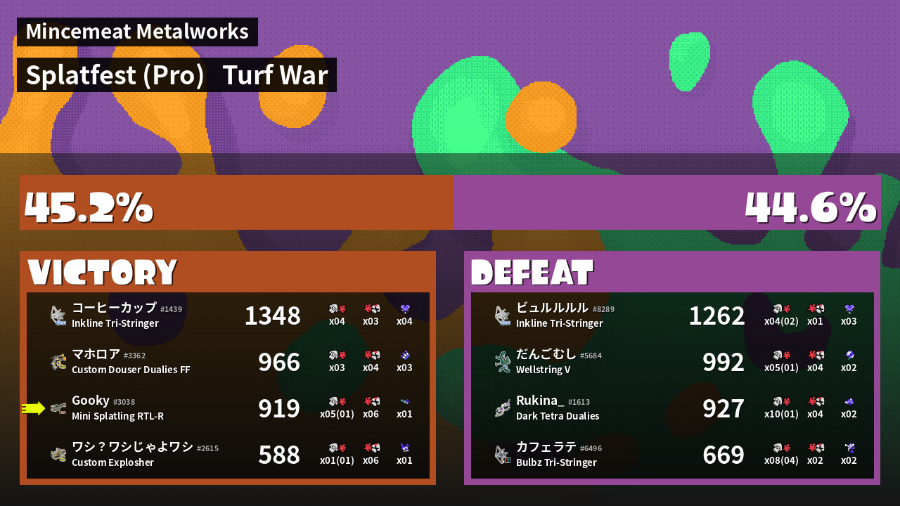 | Mode | Turf War - Splatfest (Pro) | ||
