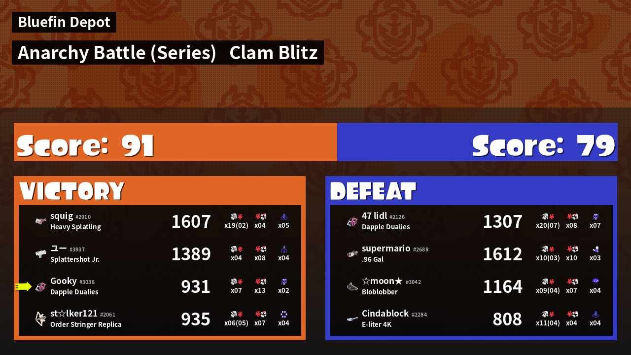 | Mode | Clam Blitz - Anarchy Battle (Series) | ||