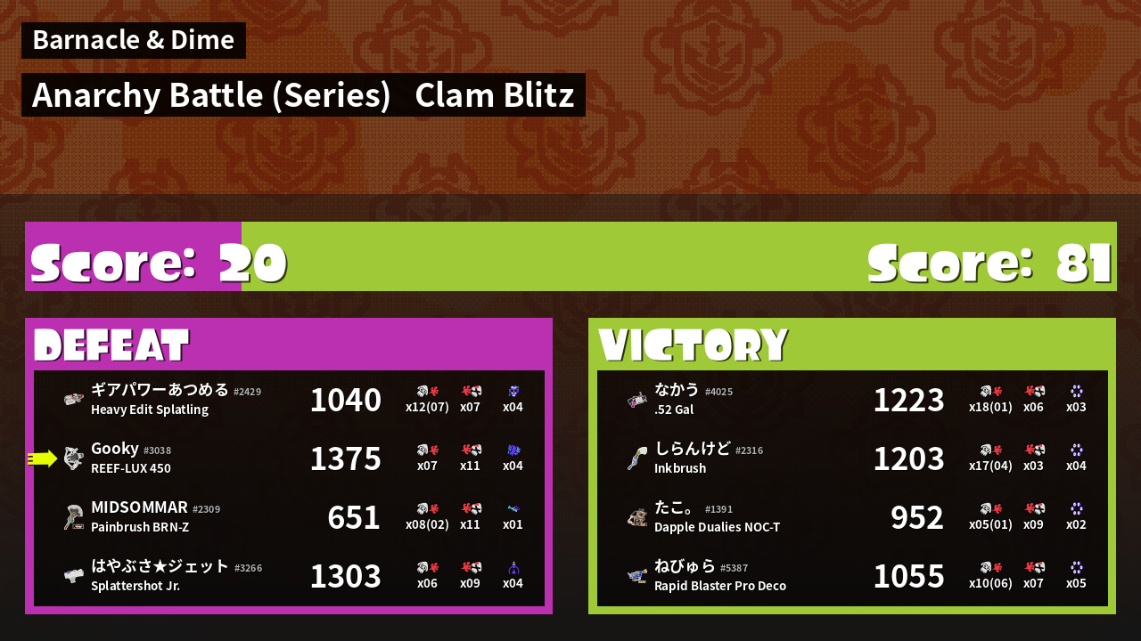 | Mode | Clam Blitz - Anarchy Battle (Series) | ||