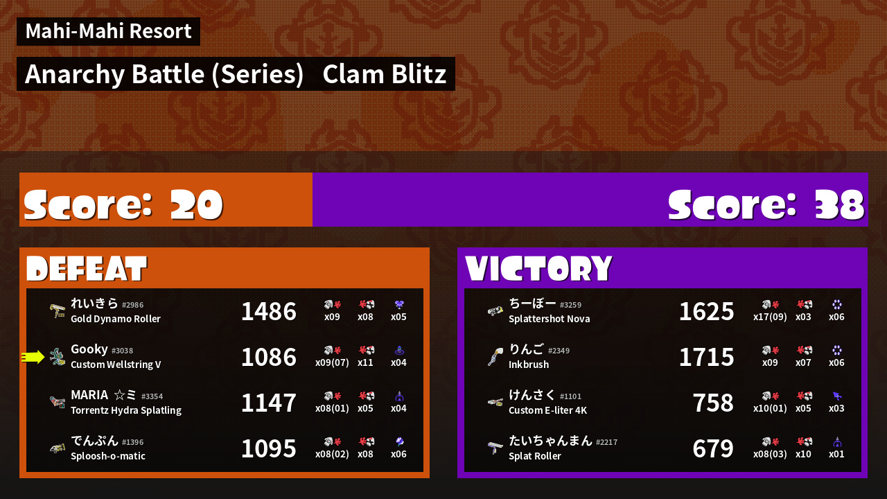 | Mode | Clam Blitz - Anarchy Battle (Series) | ||