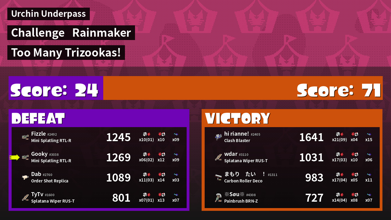 | Challenge | Too Many Trizookas! A high-powered Trizooka battle! | ||