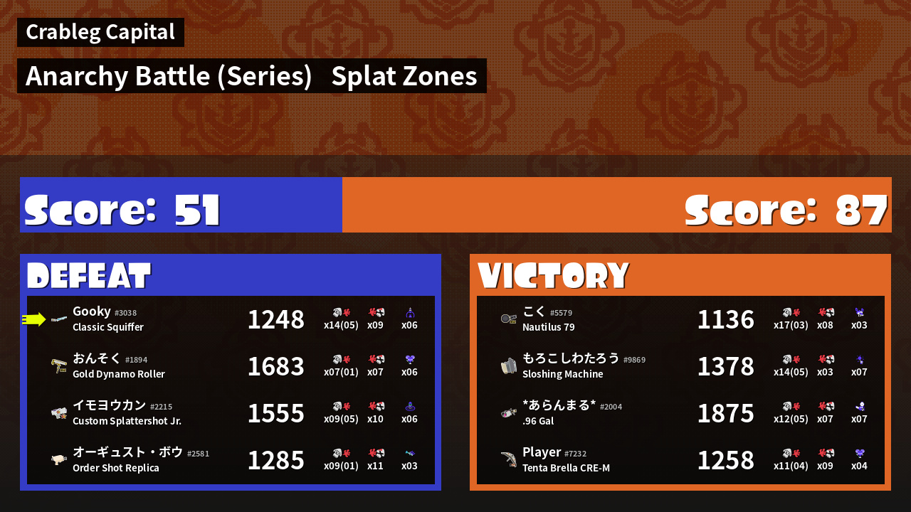 | Mode | Splat Zones - Anarchy Battle (Series) | ||