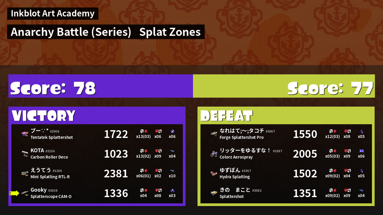 Name | Weapon | Inked | ![]() |