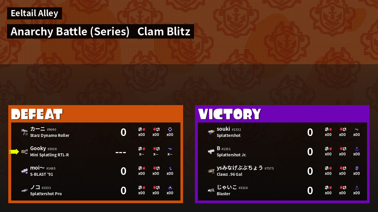 | Mode | Clam Blitz - Anarchy Battle (Series) | ||