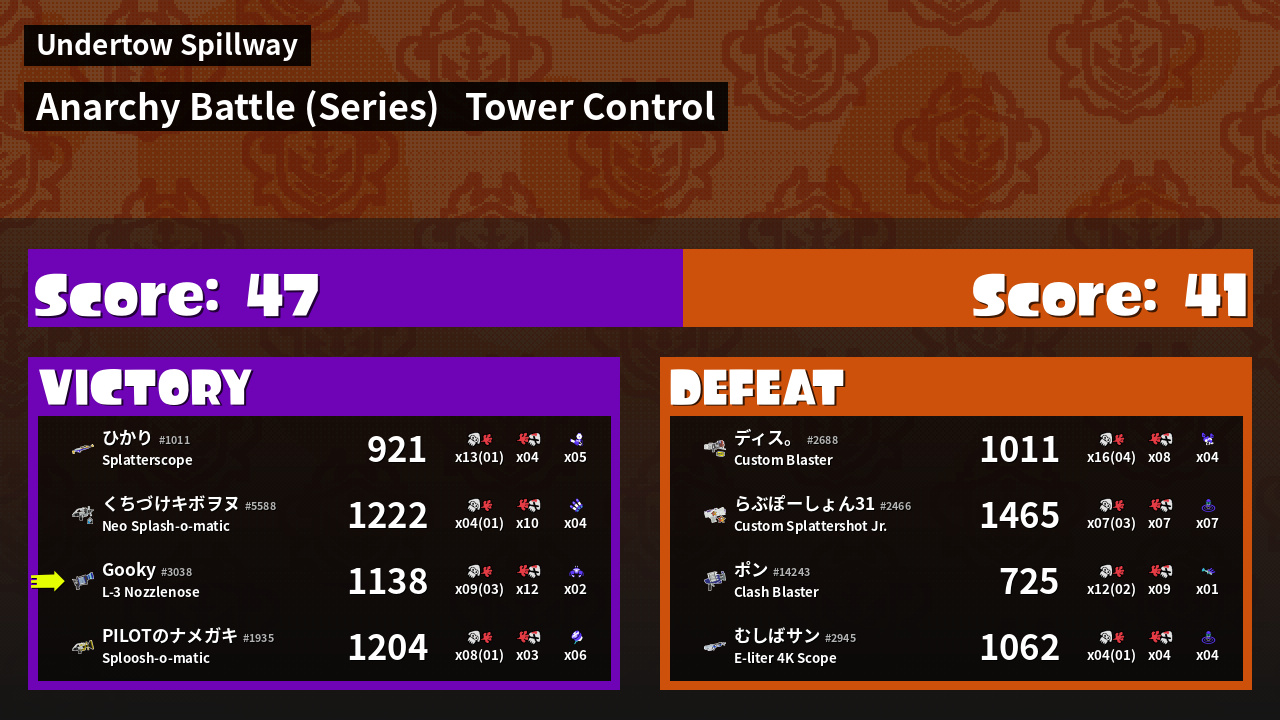 | Medals | #1 Splat Assister #1 Checkpoint Breaker #1 Tower Stopper | ||
