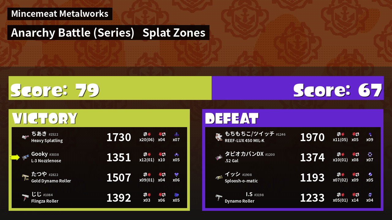 | Mode | Splat Zones - Anarchy Battle (Series) | ||