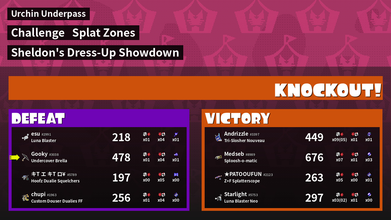 | Medals | #1 Overall Splatter #1 Turf Inker #1 Enemy Splatter | ||