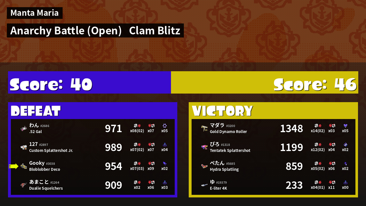 | Mode | Clam Blitz - Anarchy Battle (Open) | ||