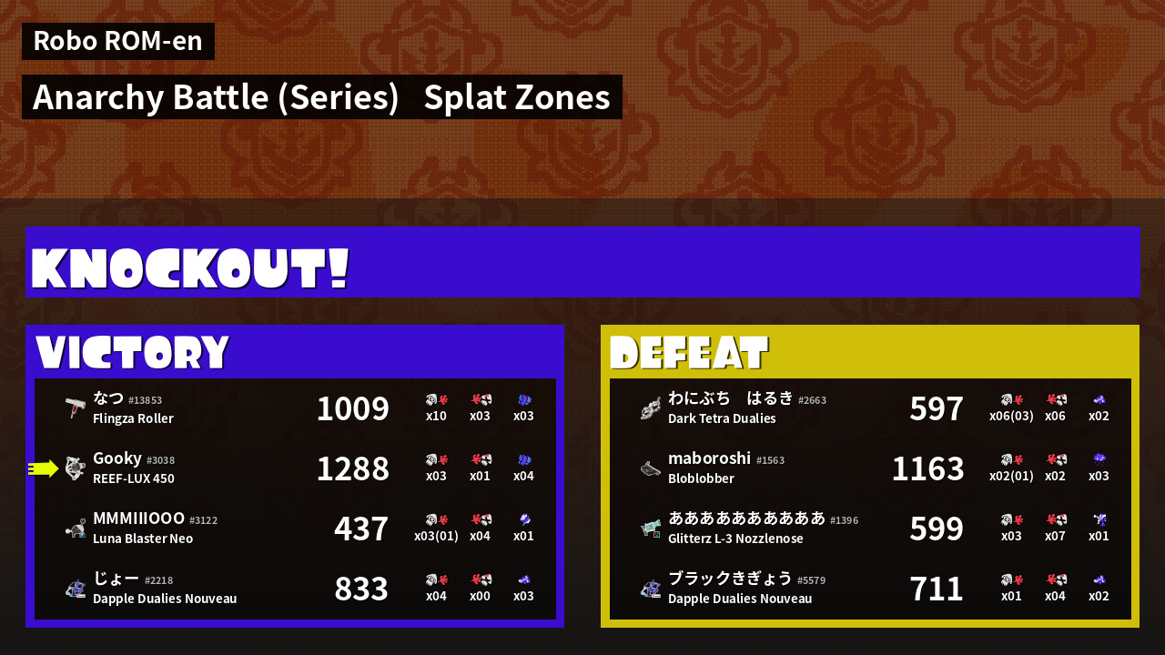 | Mode | Splat Zones - Anarchy Battle (Series) | ||