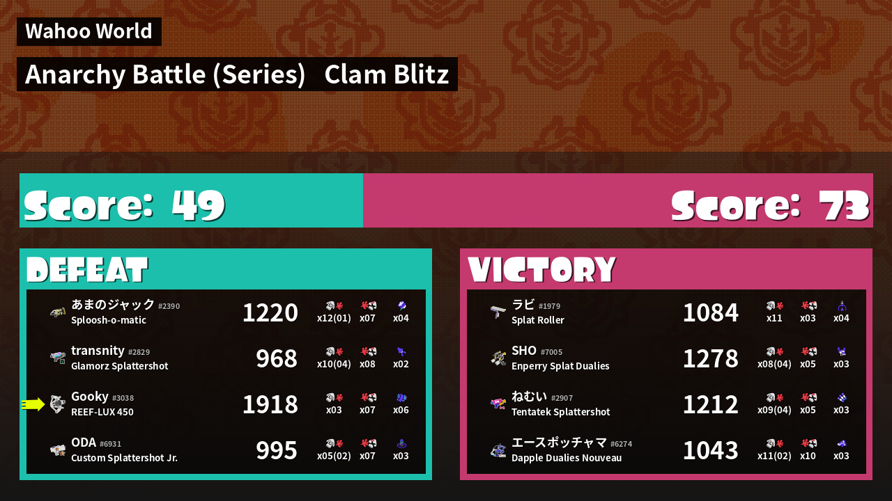 | Mode | Clam Blitz - Anarchy Battle (Series) | ||
