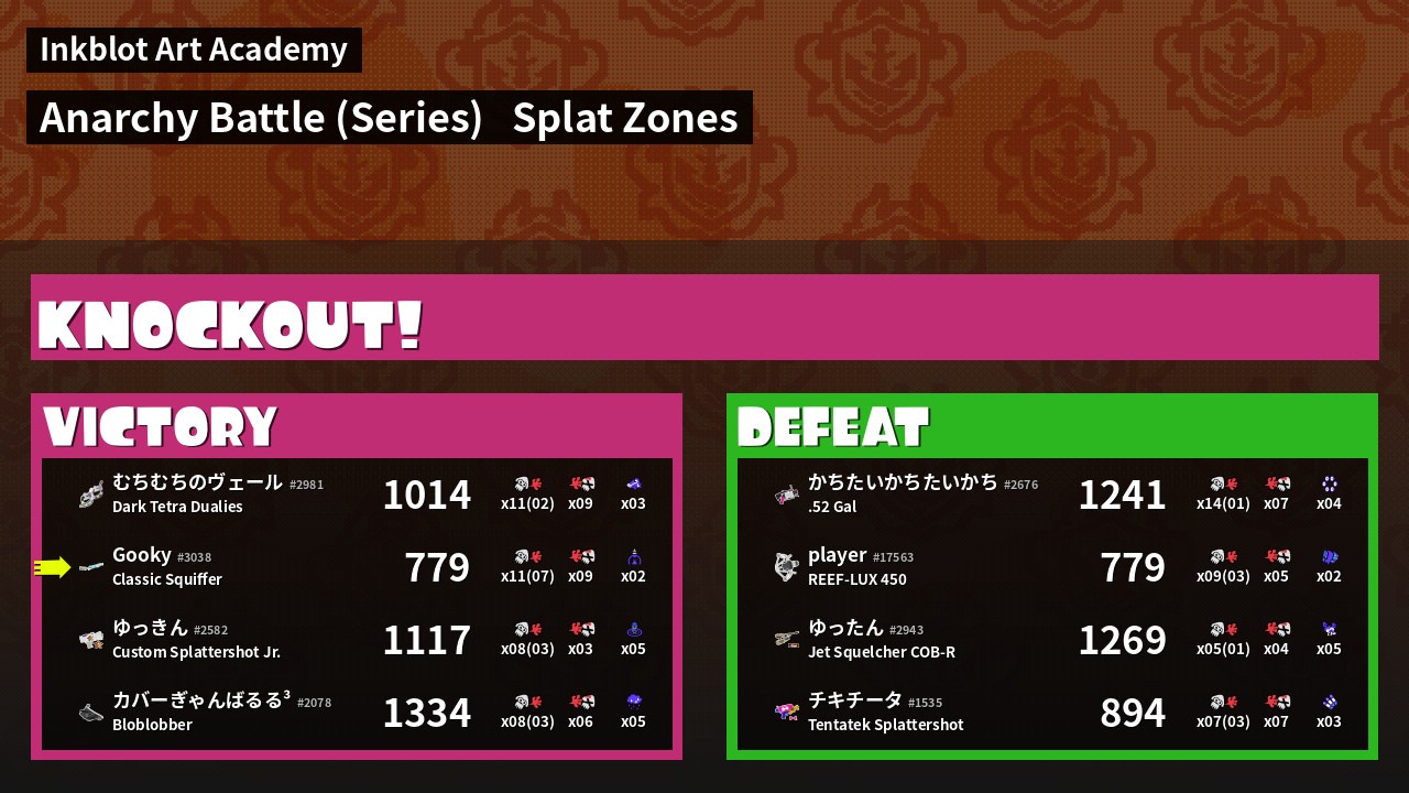 | Medals | #1 Overall Splatter #1 Splat Assister #1 Splat Zone Hero | ||
