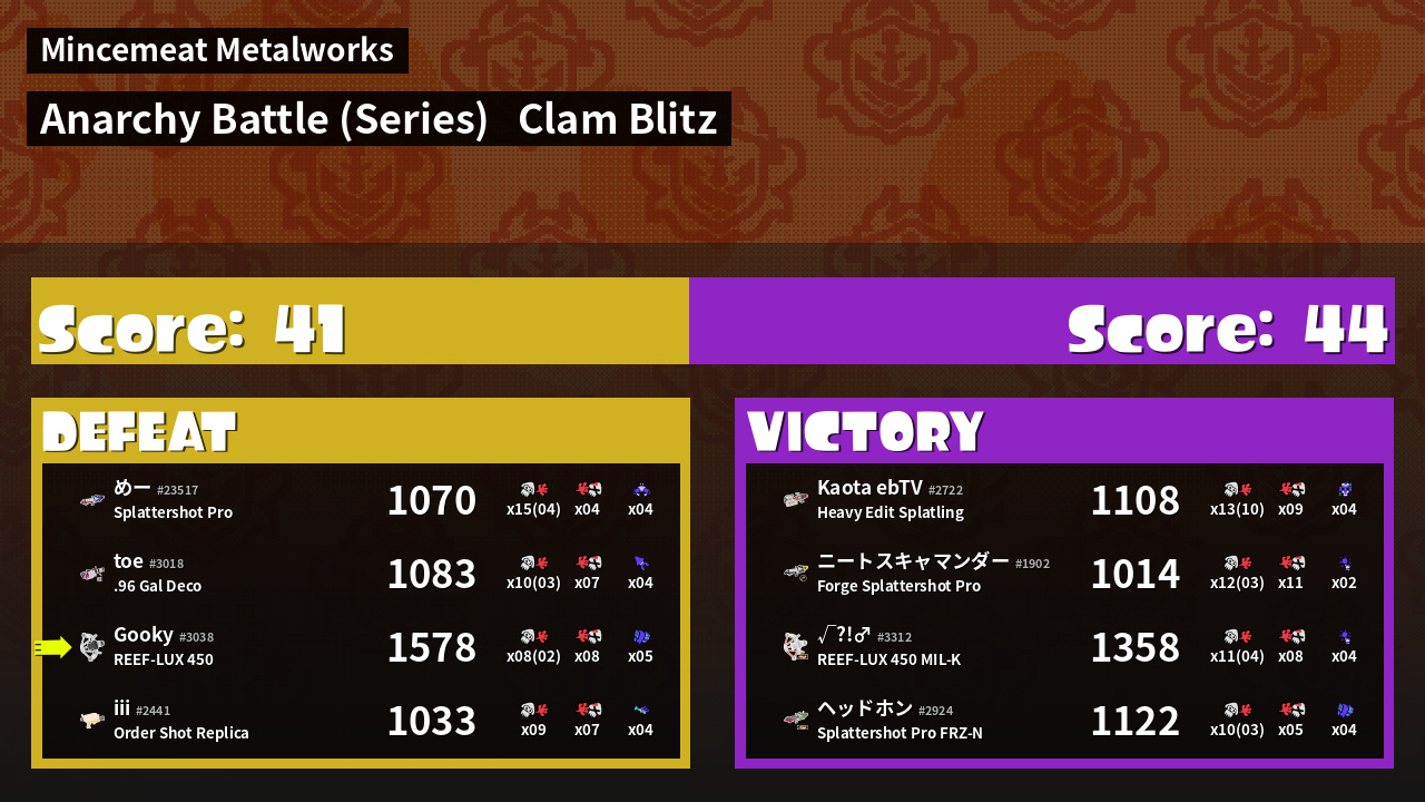 | Mode | Clam Blitz - Anarchy Battle (Series) | ||