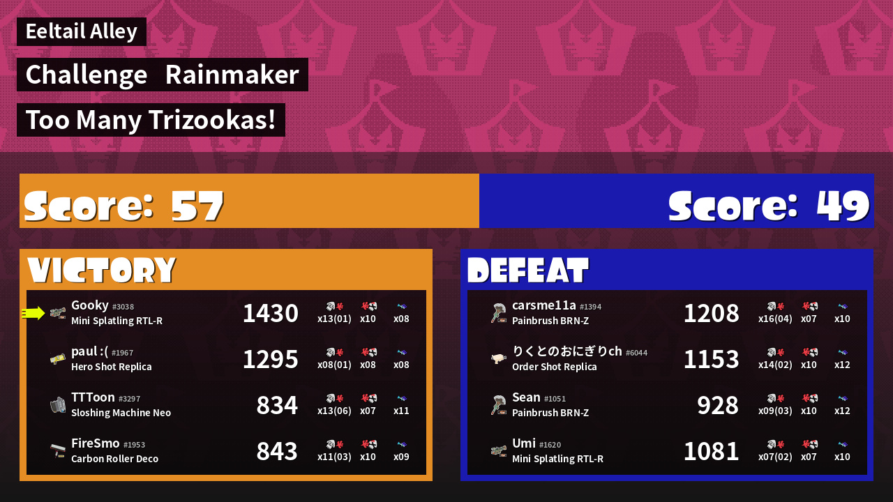 | Challenge | Too Many Trizookas! A high-powered Trizooka battle! | ||
