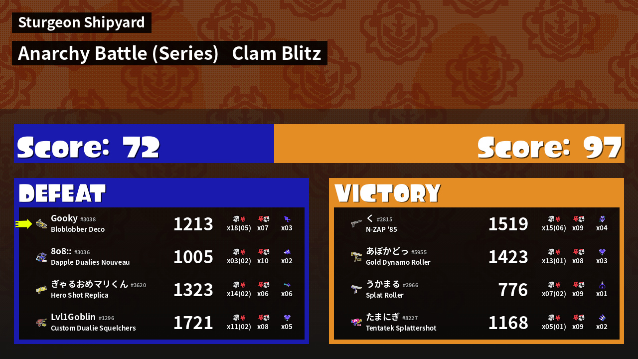 | Mode | Clam Blitz - Anarchy Battle (Series) | ||