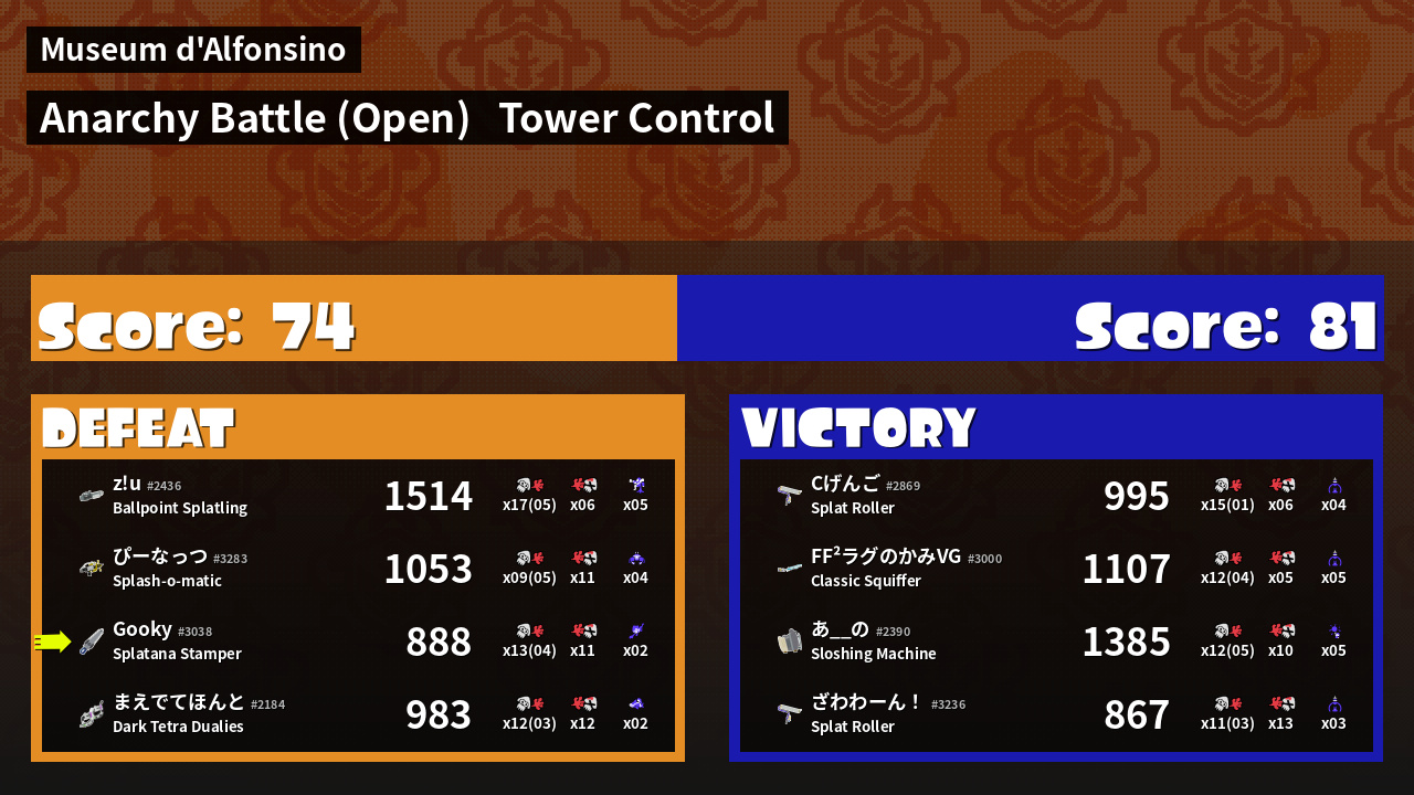 | Mode | Tower Control - Anarchy Battle (Open) | ||