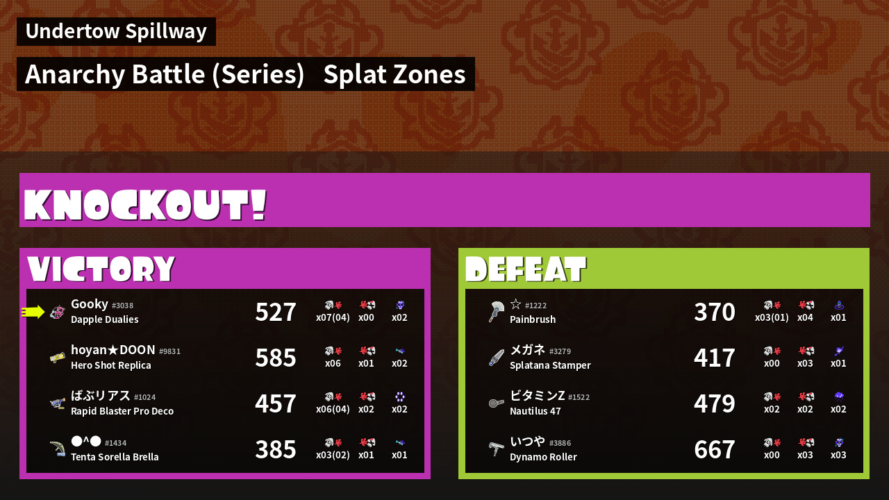 | Mode | Splat Zones - Anarchy Battle (Series) | ||