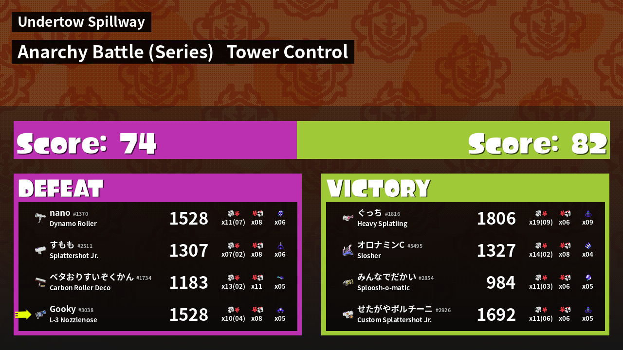 | Medals | #1 Turf Inker #1 Tower Stopper #2 Enemy Splatter | ||