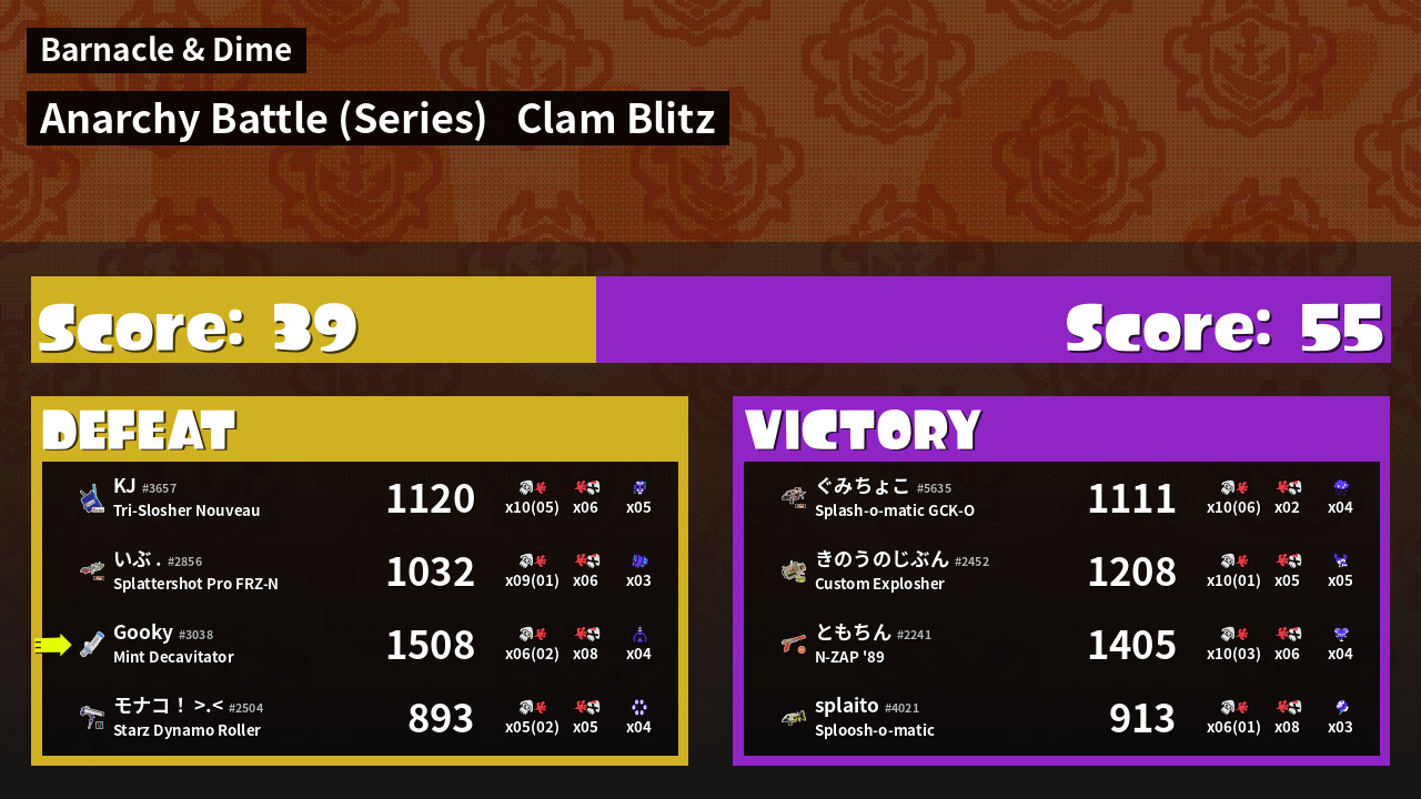 | Mode | Clam Blitz - Anarchy Battle (Series) | ||