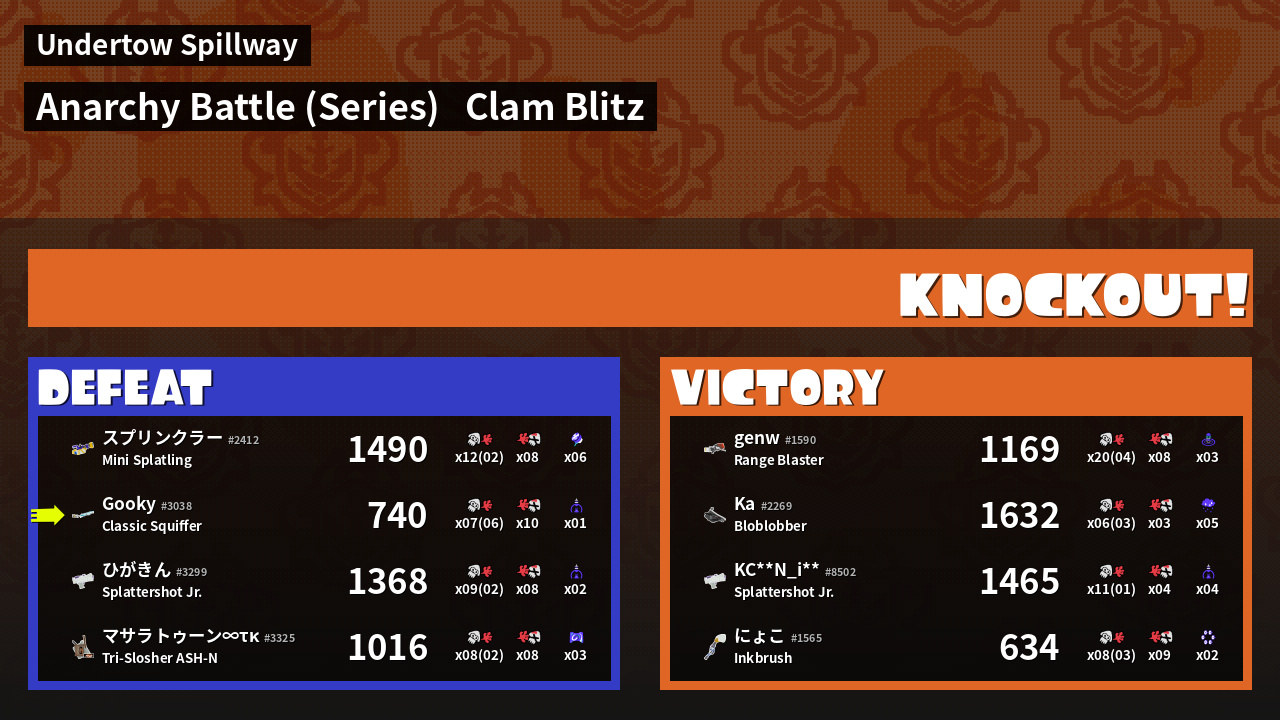 | Medals | #1 Score Booster #1 Splat Assister #2 Clam Carrier | ||
