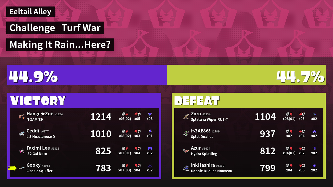 | Medals | #1 Splat Assister #1 Big Bubbler User #2 Overall Splatter | ||