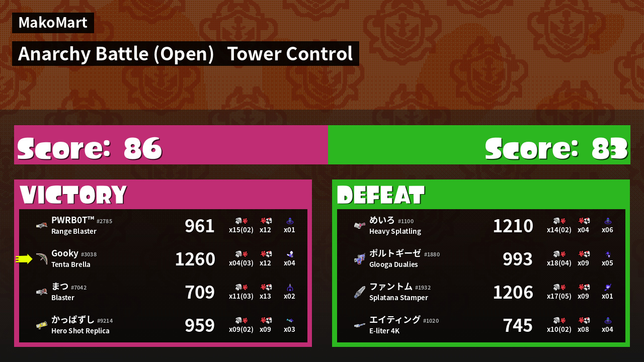 | Mode | Tower Control - Anarchy Battle (Open) | ||