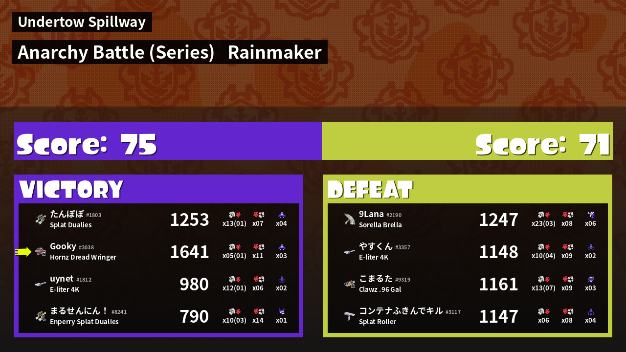 Results of Gooky's Battle