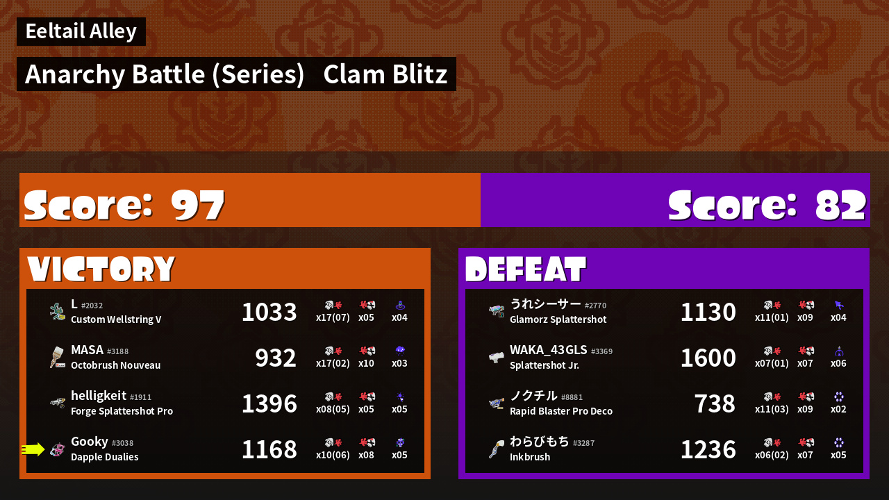 | Mode | Clam Blitz - Anarchy Battle (Series) | ||