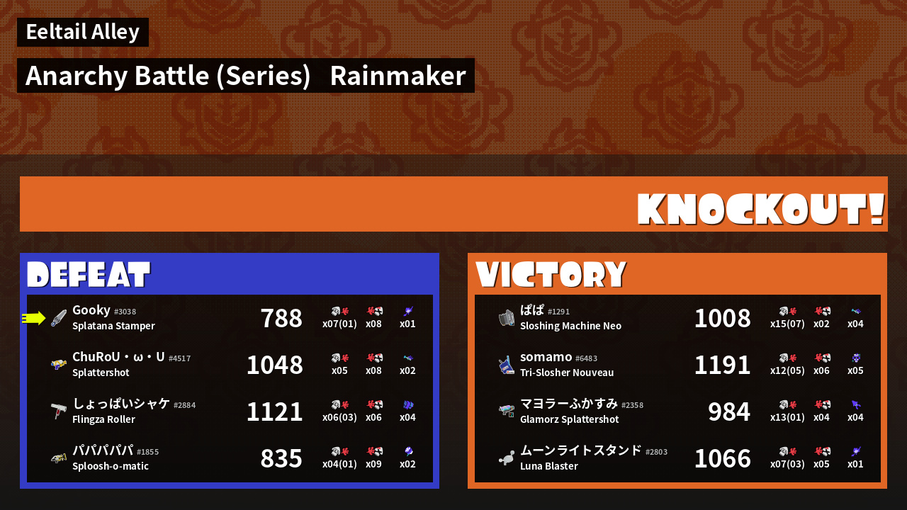 | Medals | #1 Overall Splatter #1 Super Jump Spot #1 Enemy Splatter | ||