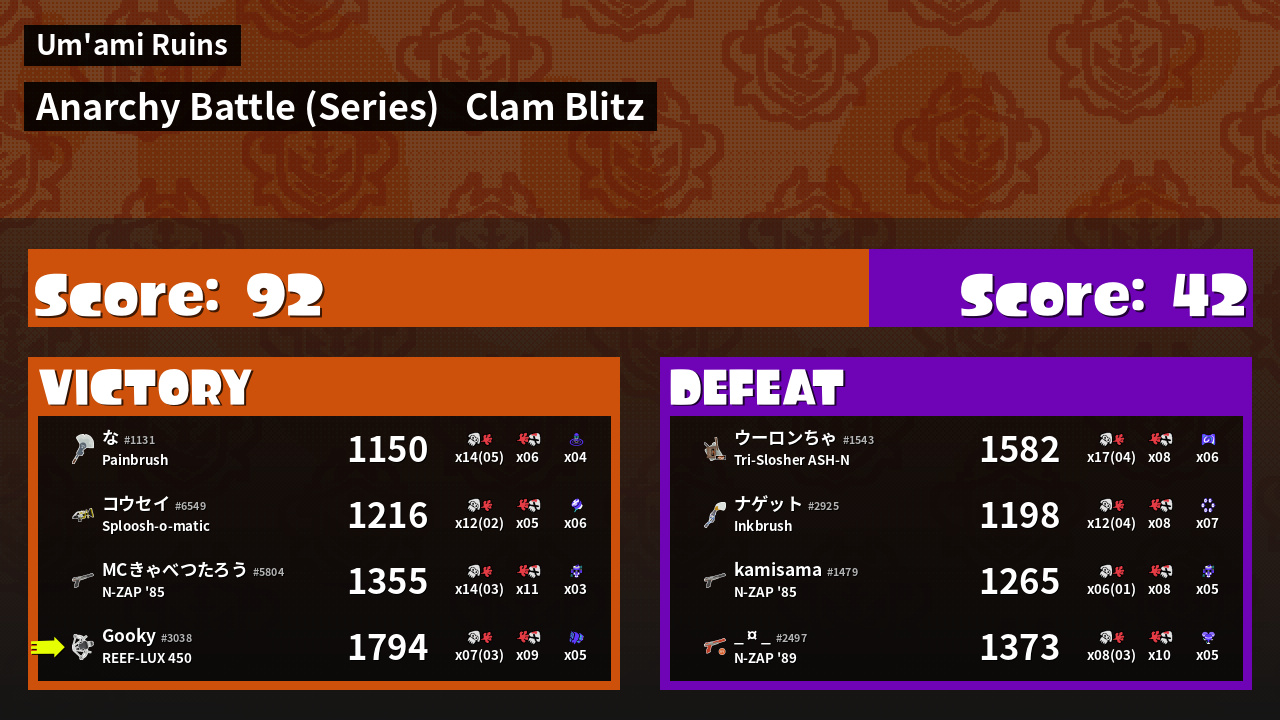 | Mode | Clam Blitz - Anarchy Battle (Series) | ||