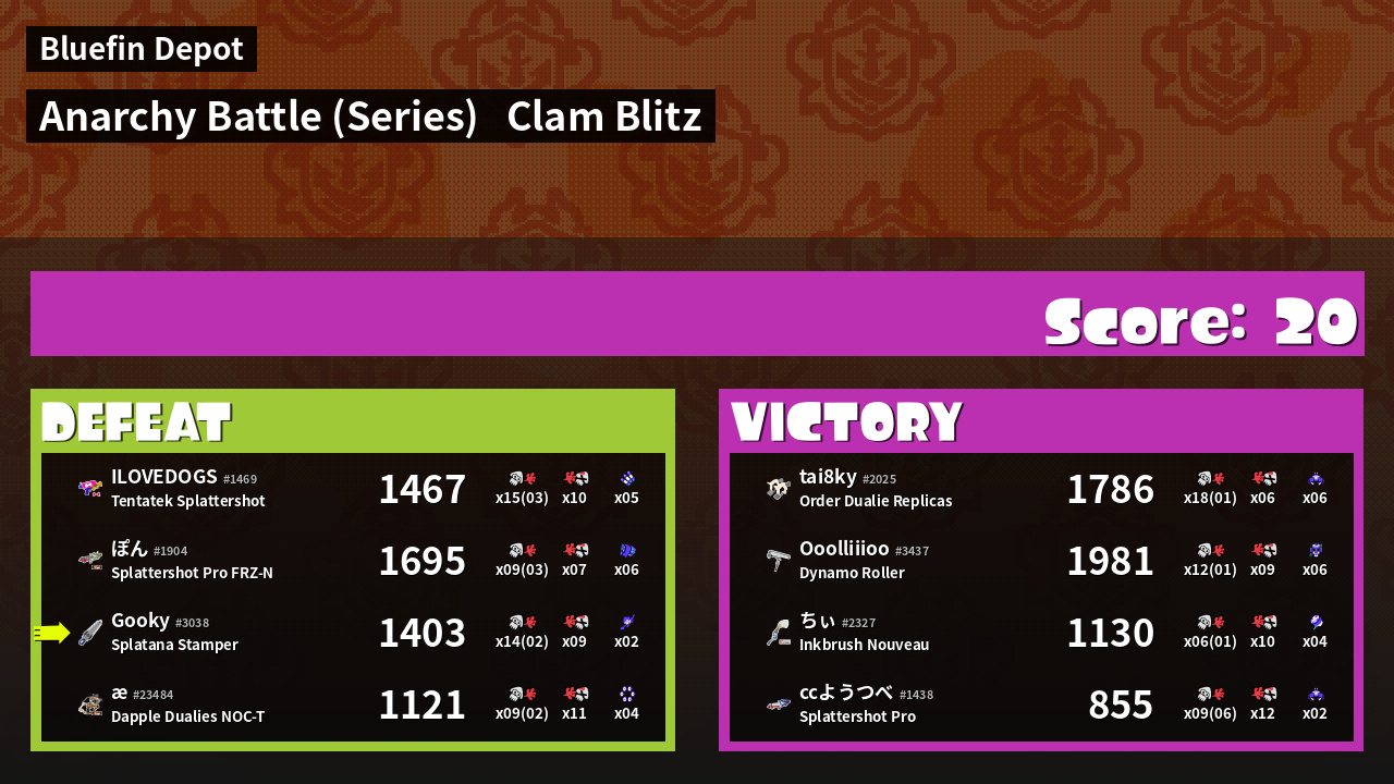 | Mode | Clam Blitz - Anarchy Battle (Series) | ||