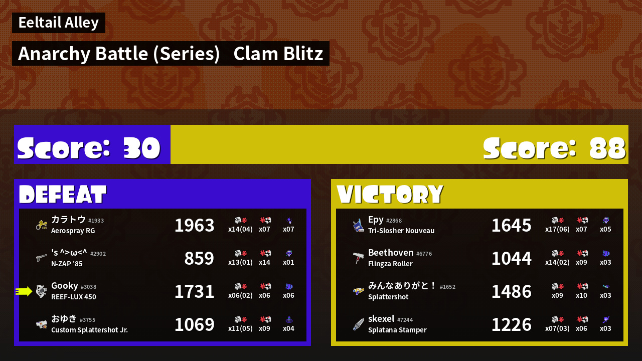 | Mode | Clam Blitz - Anarchy Battle (Series) | ||