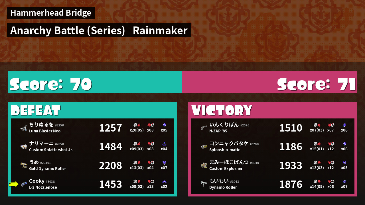 | Mode | Rainmaker - Anarchy Battle (Series) | ||