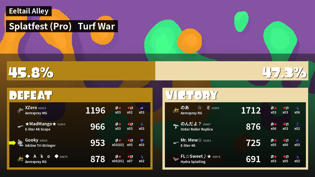 | Medals | #1 Enemy-Base Inker #1 Splat Assister #1 Ink Consumer | ||