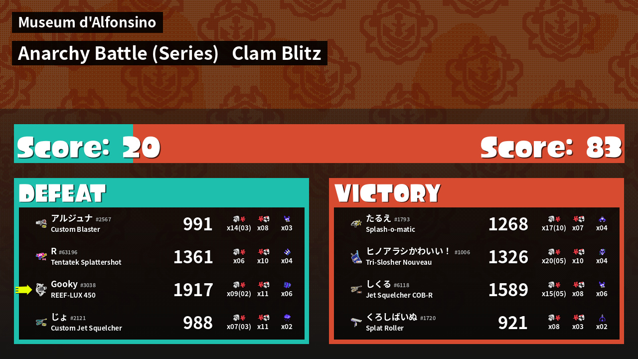 | Mode | Clam Blitz - Anarchy Battle (Series) | ||